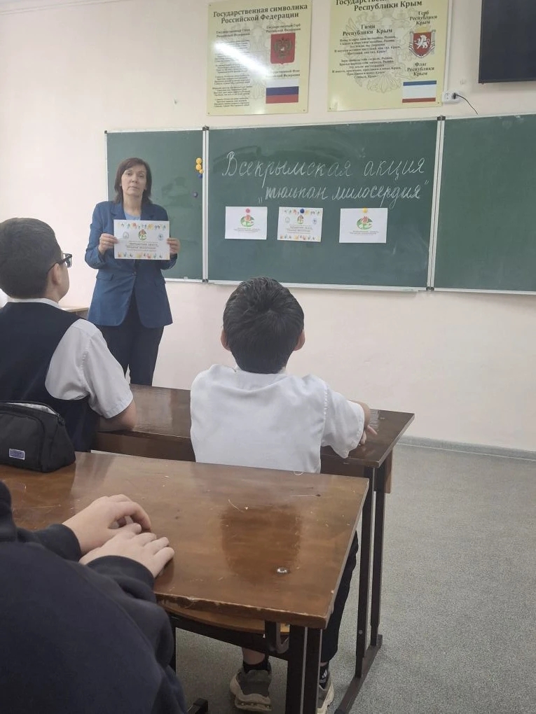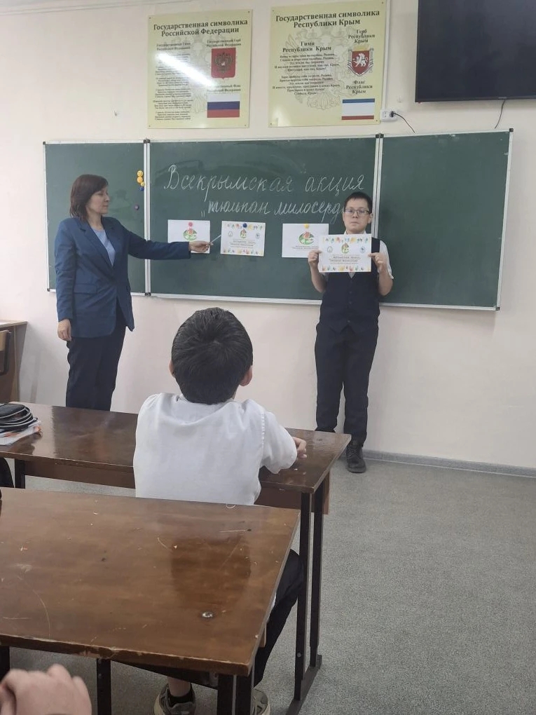 В школе прошел информационный классный час Всекрымская благотворительная акция «Тюльпан милосердия» – «Мерхаметлик лялеси».Ежегодная благотворительная акция «Тюльпан милосердия»(«Мерхаметлик лялеси») традиционно направлена на оказание помощи семьям с тяжелобольными детьми, а также семьям участников СВО.«Участие в таких акциях, как «Тюльпан милосердия», имеет огромное значение. Это не просто сбор помощи, это важный воспитательный момент, который учит наших детей быть отзывчивыми и внимательными к тем, кто нуждается в поддержке», — отметила Романова Т.В.